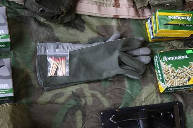 Aunque no estén en la bolsa de cada uno de nosotros lleve un par de guantes de vuelo Nomex para proteger nuestras manos. Cada uno de los niños tiene guantes que adapten sus manitas, así cada uno de los paquetes de adulto tiene un par de guantes de trabajo pesado (no mostrado) para no romper de los guantes de vuelo haciendo el trabajo alrededor de la posición de noche o en nuestro error de localización.