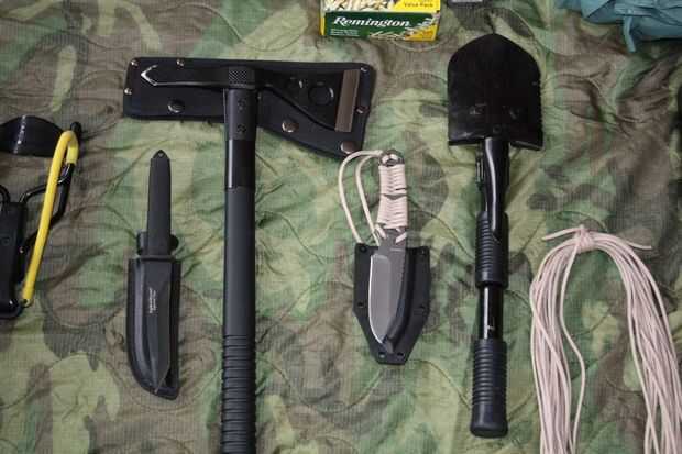 Cada bolsa tiene también una pequeña pala de Coleman mochila que ha sido agudizada a lo largo de un borde. Puede doblar como un arma si fuera necesario, otra vez para aquellos tiempo cuando un arma de fuego que se apaga dibujar demasiada atención.