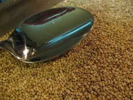 Tueste las semillas de sésamo a 325° por unos 15 minutos en una bandeja para hornear (con lados--un molde para pasteles grandes es ideal)
