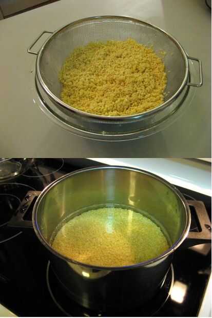 Vierta el frijol mungo empapados en un colador y enjuague con agua corriente. Transferencia de frijoles en una olla o pote de pasta y añadir agua para cubrir .