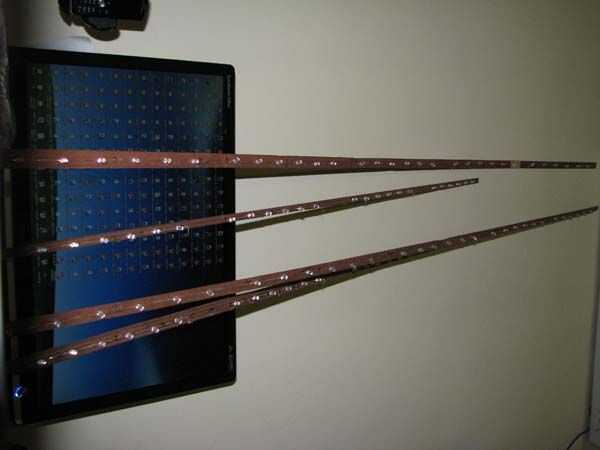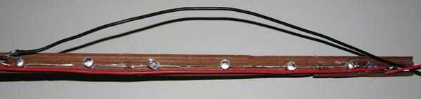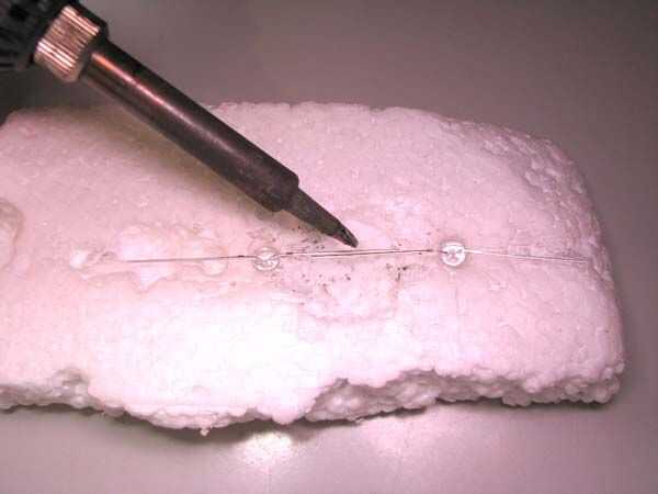 usar una espuma de embalaje, he creado mi propio aparato especial para soldar los leds igual distancia y espaciados. he elegido a los leds de 5cm de las luces laterales y 4cm para las luces delanteras y traseras del espacio. bastante seguro de que hay mejores formas de hacerlo. pero no creo que mucho. Recuerde que debe excavar un agujero y la soldadura de hierro o piernas led no toquen la espuma.