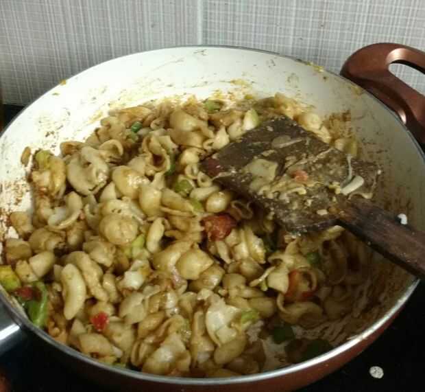 Añadir la pasta cocida. Cocinar durante otros 3-4 minutos.