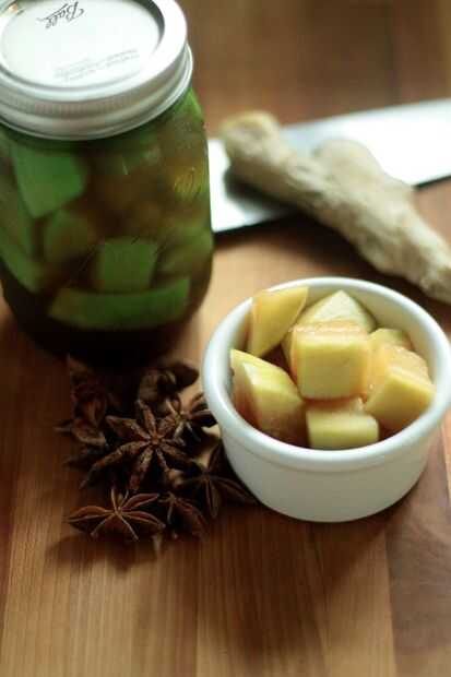 cerdo asiático con fideos SobaPorciones - 2 grandes1/2 taza de salsa de soja1/2 taza de azúcar morena2 cucharadas de vinagre de vino de arroz1 cucharadita Aceite de sésamopedazo de 1 pulgada de jengibre fresco, peladas y picadas1/4 de cucharadita de