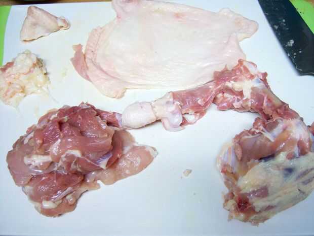 1. deshuesar el pollo retirando cuidadosamente la piel y la carne de los huesos de pollo. He incluido un vídeo que hará más fácil para ti si nunca lo has hecho antes. No te preocupes, esta fue mi primera vez también.