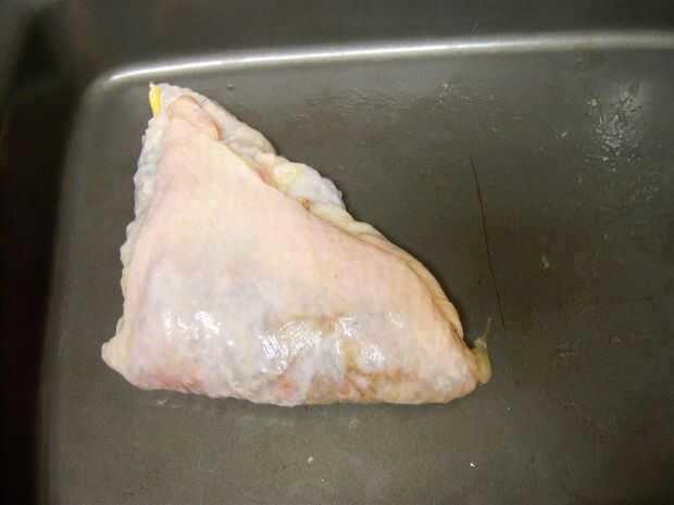 8. Coloque la bandeja en el horno y cocine hasta que la piel es agradable y fresco. (Aprox. 40-50 minutos). Unos 20 minutos en Revise dos veces los cuartos de Pollo relleno añadiendo más salsa de soja y también mueve las piezas para asegurarse de que no estaba pegado a la parte inferior de la bandeja.