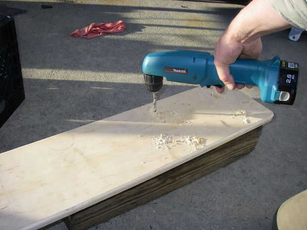 Marque las ubicaciones de los agujeros para empernar la Junta para su ciclomotor. Gradualmente un lápiz delgado para llegar a través de los orificios existentes en el portaequipajes y marcar la placa. Taladre los agujeros para los pernos. Usé 1/4" -20 hilos por pulgada pernos.