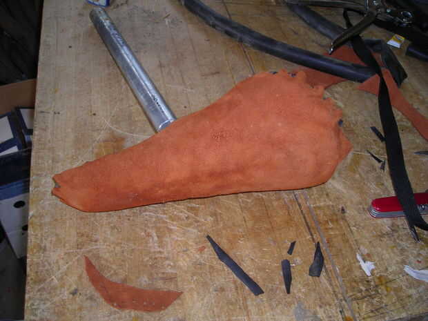 Una vez que se montó en la moto, yo empapado la gamuza con agua. No estoy seguro de que era necesario, pero pensé estirar algunos, entonces reducir tigher que antes. No duele nada de todos modos.