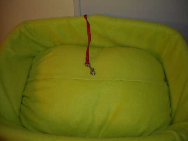 Para ello, simplemente necesita una cesta de ropa, almohada, sobre la yarda y media de paño grueso y suave o de otro material y una correa.