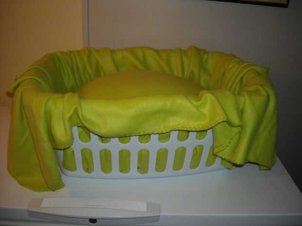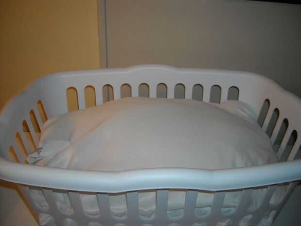 Manera perezosa: poner la almohada en la cesta y simplemente cuelgue de la manta o tela de la almohada que más suave y cubrir los orificios de ventilación.