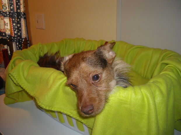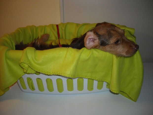 La imagen final es el producto final. Mi perro que Lucky Jack está sentando en él antes de que yo había cosido a la tela en su forma, sólo quería ver lo que pensaba de él.