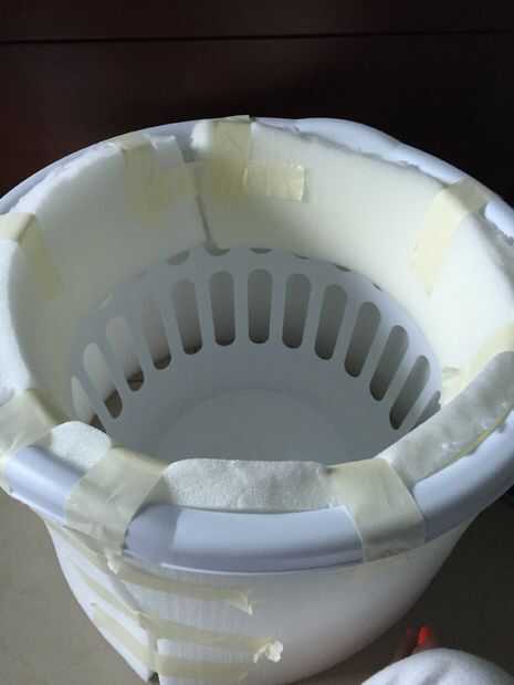 Garantizar el polifoam con cinta de enmascarar. Asegúrese de utilizar el borde plástico de la cesta como un 'ancla' para el polifoam! Moverse de esa manera wont