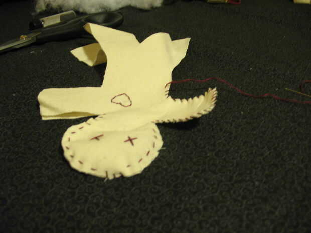 5. empezar a coser la parte delantera a la parte trasera. Coincidir las piezas si están torcidas. Empezar a coser. Utilice una puntada recta o circulan por los bordes, o ambos. Usé ambas realmente acentuar esa sensación 'inestable' en mi válvula.