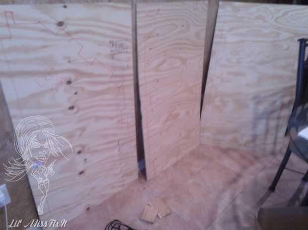 Coloque una hoja de la madera contrachapada para que cubra la sección, luego gatear debajo y traza la forma con un rotulador. Hacer esto para las secciones izquierdas, centrales y derecha individualmente.