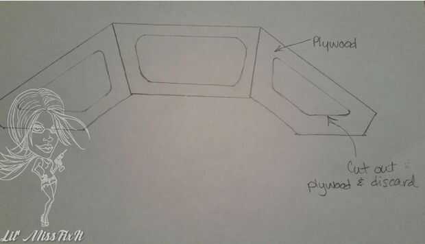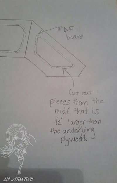 Luego, utilicé hojas de hojas MDF para hacer las tapas. Aquí están los dibujos ásperos que hice que podrán ayudar a explicar. Básicamente, usted necesita cortar una forma que es más grande todo el camino alrededor, así que no caiga a través de 1/2". Fui con el MDF ya que tiene una mirada suave agradable y es muy robusto.