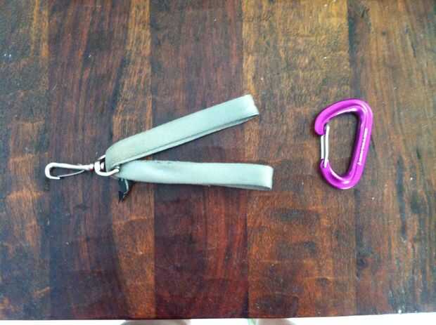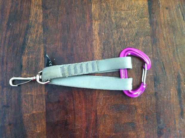 Prensa la escalada eslinga plana y cadena uno poner fin a medio camino a través de la abrazadera metálica.  Debe ser cierto han encadenado, recoger ambos extremos y clip del mosquetón a través de ambos.