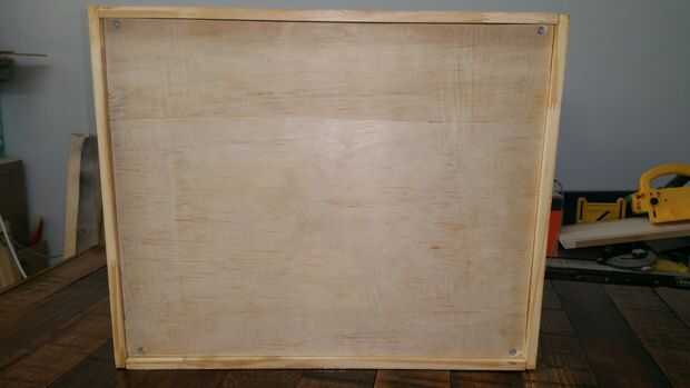 Hacer primero los lados largos por pegar y clavar los lados largos sobre los soportes de 42 x 19 mm. Luego pegamento y clavo la parte delantera y la espalda a los lados asegurándose que la parte superior de la caja está a nivel con el fin de las ayudas. Coloca la base en el marco como hacía para evitar que los cuadrados.