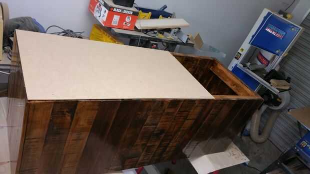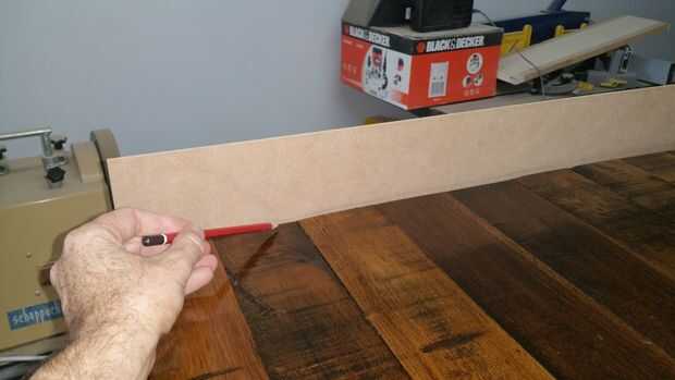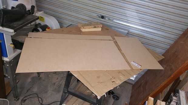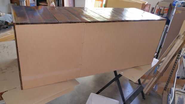 Una vez que el acabado esté seco marca y cortar el tablero del forro a la medida. Usé 3 m m MDF ya que era barato y no se verá. Podría dejar la parte de atrás pero no quería que las cajas que se empujará hacia atrás contra la pared constantemente ya que puede rayar o dañar la pared.