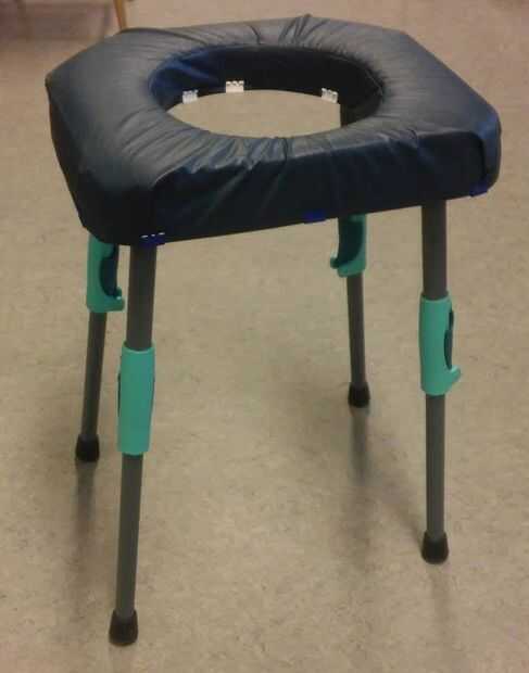 Por lo tanto, desarrollamos conjuntamente un asiento único. Este producto en cualquier lugar le permite visitar la sala más pequeña. Para que sea fácil de transportar o colgar a su silla de ruedas, la luz del cuarto de baño debe ser compacto y plegable. Un asiento de ducha función adicional sería su gran valor. El asiento se compone de un asiento a la medida con una suave capa impermeable. Las patas extraíbles son retráctiles por lo que la longitud es ajustable dependiendo del contexto en el que ella usa el inodoro. La altura correcta facilita la transferencia entre la silla y el baño. El inodoro puede guardarse fácilmente en una mochila en su silla de ruedas.