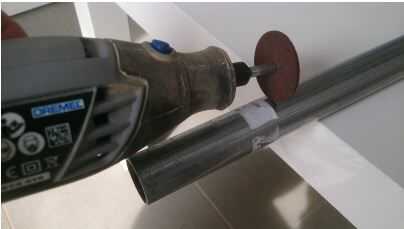 Ahora, para comenzar con la conexión entre las piernas y los asientos, que serán a través de las piezas de metal en el asiento, grinde un corte en cada pata con una Dremel o muela. Asegúrese de que la ranura está en la misma distancia que la altura de los tubos metálicos que fueron cortado antes.