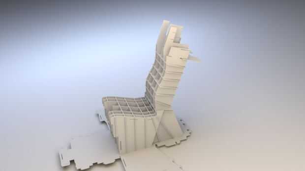 Lo estoy haciendo en max creando cuadros de 5 mm fina (depence de espesor del material) y colocarlos en puntos. Después de eso utilizo ProCutter modificador para crear la forma exacta de cada costilla. También tienes que hacer agujeros y cerraduras (enclavamientos) a cada autobloqueantes entre las costillas. Pensar dos veces e imaginar cómo usted será Asamblea asiento entero para no llorar al final!