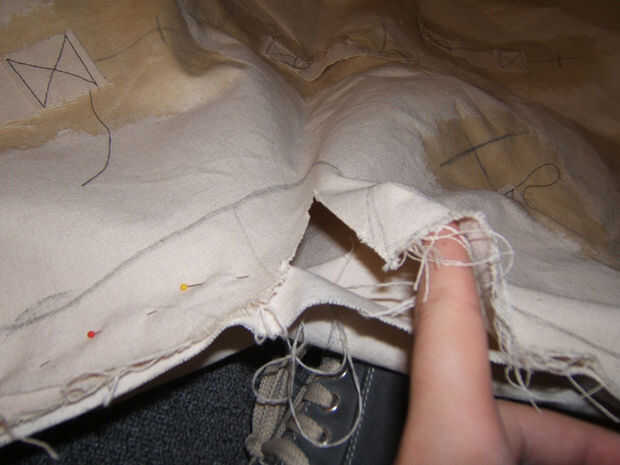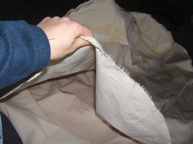 El último paso es ahora repetir la costura pleno a la frontera de la lona de la misma manera que el primero. La única diferencia esta vez es para no coser completamente alrededor del corazón. Dejar un espacio abierto de aproximadamente un pie (o suficientemente grande como para pasar el brazo a través de). Y no se olvide de asegurarse de que las asas estén orientadas hacia el exterior de la estructura del corazón.