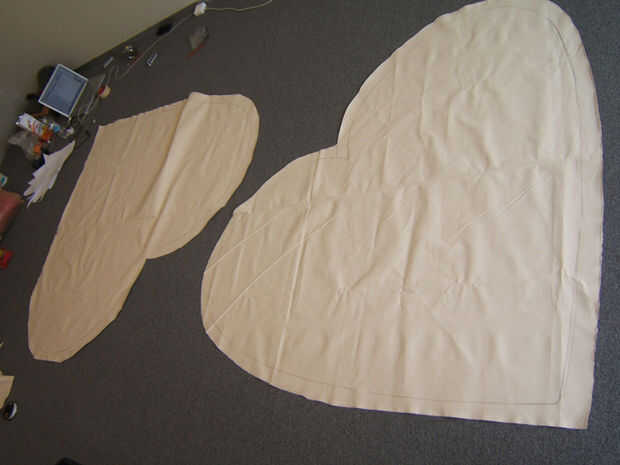 Cortar los corazones de tela a lo largo de la frontera 2" que acaba de trazar.