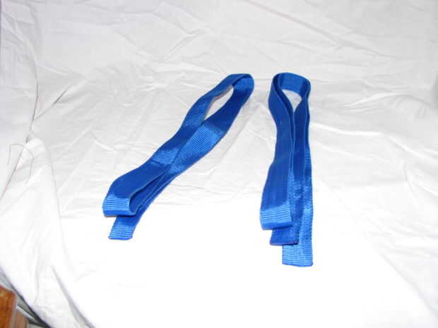 Corte 2 tramos de 1" de nylon de las correas en deseado longitudes. Corté mis en 24".  Derretir los extremos para evitar que se deshilache.  Estos serán las cintas que los O rings adjuntados.