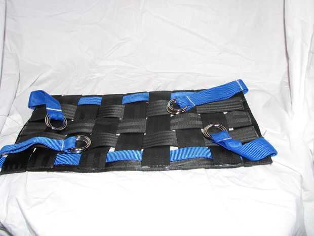 Rosque las correas del anillo O a través de los extremos del lazo de su asiento. Yo alternaba mina a través de los soportes.