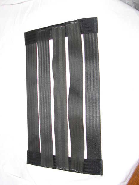 Cortar 3 tramos de cinta más ancha en tamaños deseados. Elegí 15,75".  Derretir los extremos para evitar que se deshilache. Coloque cada pieza en la parte inferior del marco, cada espaciado uniformemente. Utilizar una puntada recta y seguir adelante y atrás 4 - 5 veces. Repita en el otro lado.