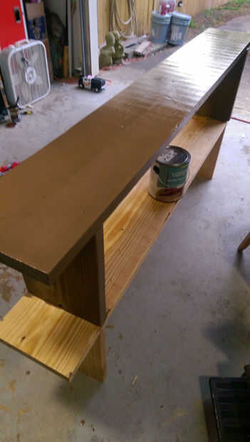 Aquí está una foto del primer banco pintado con la pintura al aire libre de descuento!