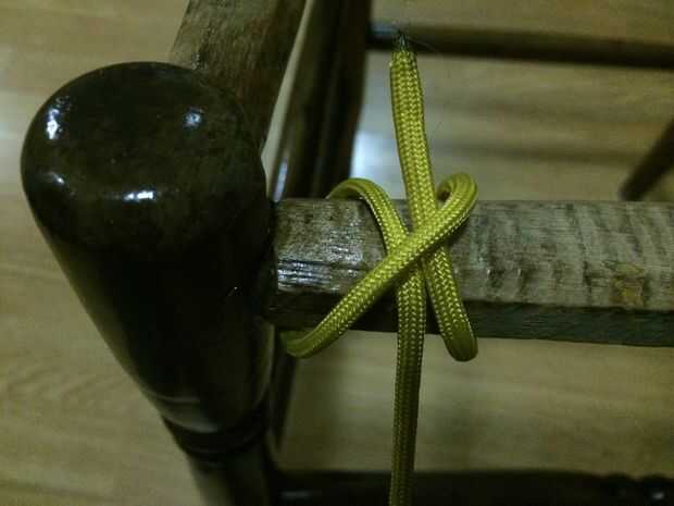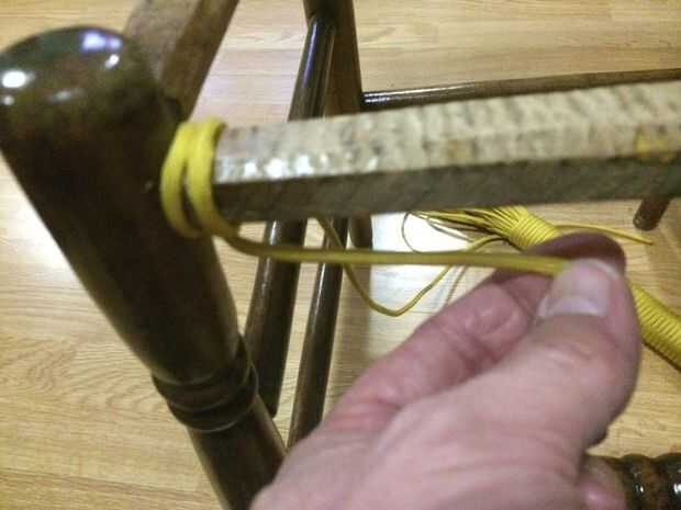 Coge 110 pies o más de paracord y vendar por lo que es fácil de manejar. Lo he intentado varias formas de liar el cable y encontrar que una banda de caucho funciona sobre así como de cualquier cosa. No he probado rodando en una bola como hilo pero que podría funcionar también. Sólo debe ser acaparada por lo que es fácil de pasar mientras usted mantenga el cable de ajuste en el marco de la silla.