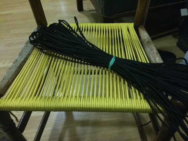 Para comenzar a hacer un ballestrinque u otro nudo en el lado del pasador en la misma esquina donde empezaste la primera capa. Un segundo nudo a la cola de cochino que te fuiste de la primera capa para garantizar ambas capas. Alternativamente puede cinta o el paracord en el interior de la espiga del clavo y enrolle sobre él. Tampoco parece funcionar bien. En esta silla me olvide de dejar una colita de cerdo para que graba solo a la espiga del lado donde se le oculta.