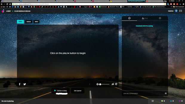 Una vez usted es un miembro de Dubtrack y ha encontrado la sala de música reproducción de música que desea escuchar a usted querrá tocar tus propias canciones. Para empezar haga click en el enlace de "una canción de la coleta del" como se muestra en la imagen.