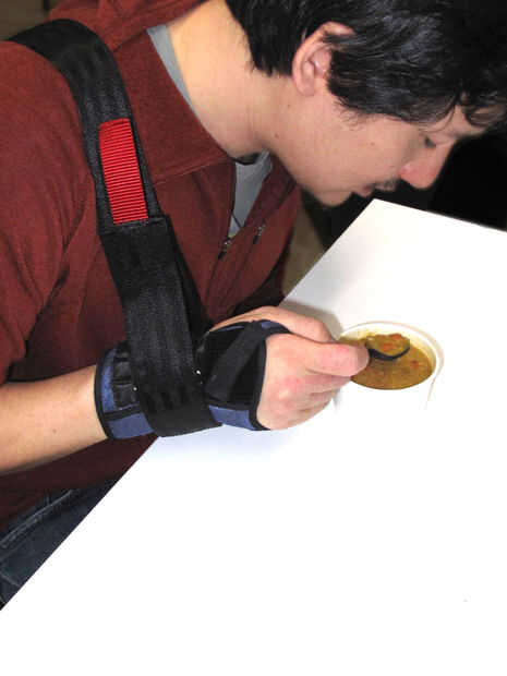 Esto es parte de la medicina y proyecto de diseño de dispositivo de asistencia en la primavera de 2010 Universidad de Emily Carr (Vancouver, A.C.). Mi proyecto se pretende ayudar a las personas con limitado o ninguna fuerza en los brazos para ganar cierta independencia comedor. Espero poder obtener retroalimentación de los usuarios para que el dispositivo puede mejorarse.