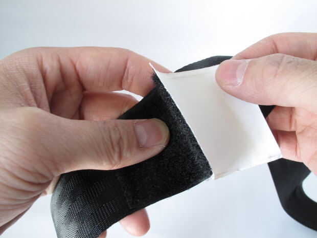 2) cortar Velcro y cinta adhesiva en las correas (ver foto)