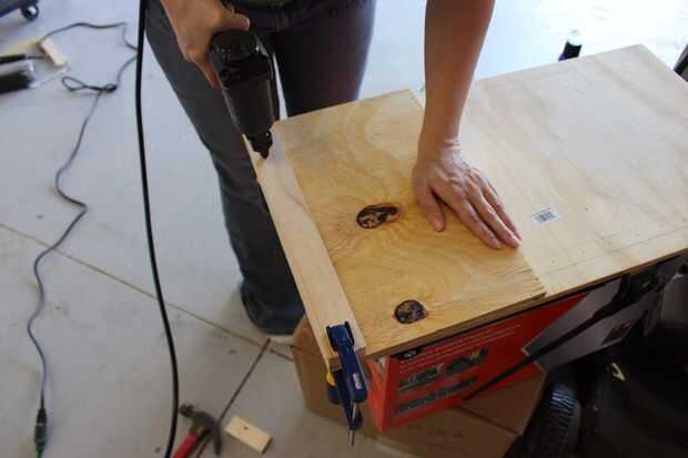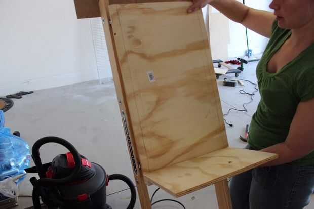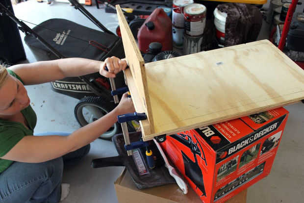 Luego, cortar la madera contrachapada de 8" de alto 14" de ancho por lo que cabe perfectamente en el cuerpo. Este es el tablero. Coloque a un lado para más tarde.
