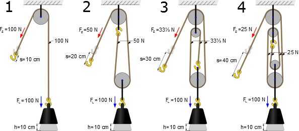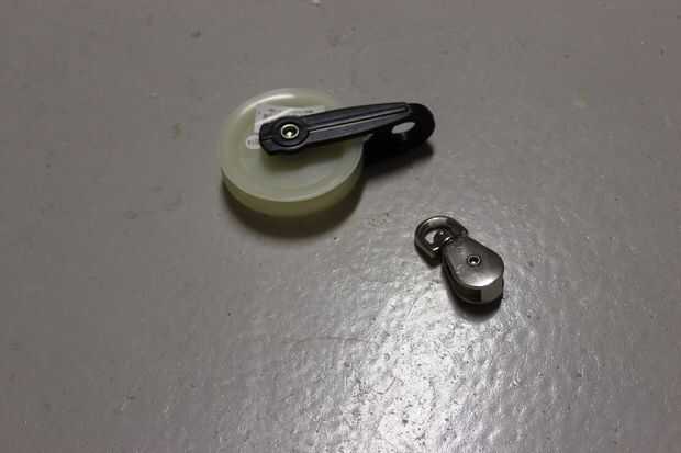 Hilo tu acorde para a través de las poleas de acuerdo al esquema que he proporcionado. He usado el #3. Este es el sistema de la 3 polea. La ventaja mecánica en el diagrama indica la carga de trabajo para cortar el 75%.