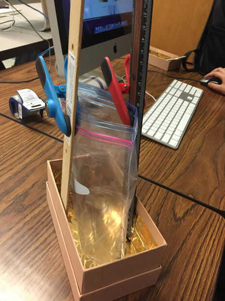 El producto consiste en una base de apoyo de la caja que contiene la bolsa de plástico y la comida que se pone en. Que se extiende desde esta caja es 2 objetos de tipo de palillo que disponen de un clip en su extremo. La idea es la parte superior de la bolsa de plástico se adjunta a la parte superior de los palos a través de los clips y abierto todo a cabo. El fondo de la bolsa será estable por descanso en el cuadro. Ahora, cuando el alimento se introduce a la bolsa, la parte superior de la bolsa no cave o caerse, evitando líos innecesarios. Nuestro producto proporciona a la bolsa de plástico un sentido de la estructura mientras se está llenando, sin embargo la bolsa conserva su estructura flexible cuando usted necesita almacenar.