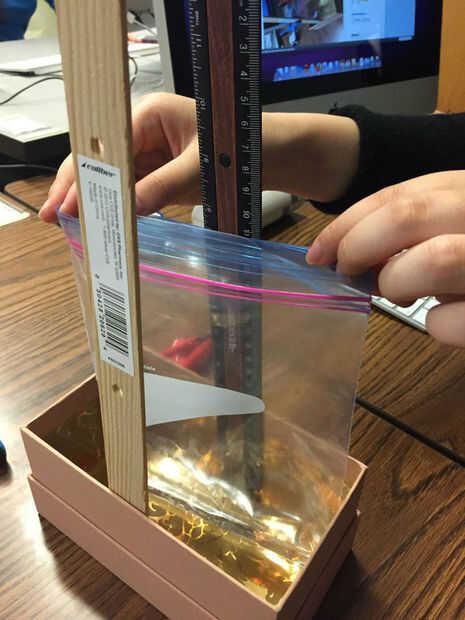 A continuación, abra la bolsa de plástico y fijar la parte inferior de la bolsa en la base de la caja.