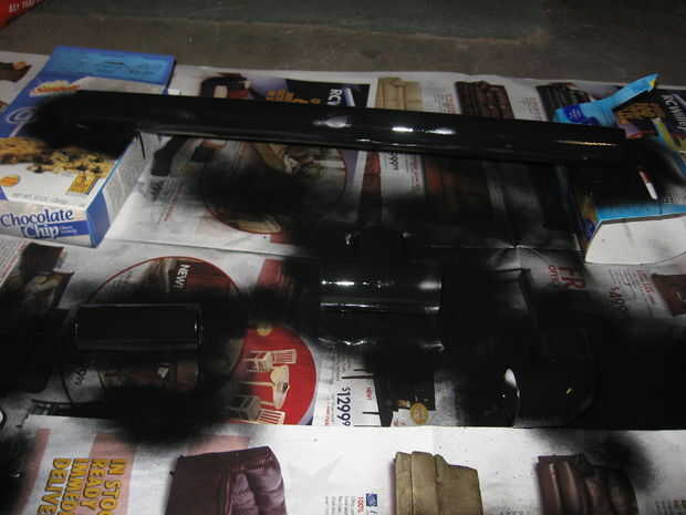 Aerosol hacia abajo todas las piezas negras y después de aproximadamente una hora voltearlas y pintar el otro lado