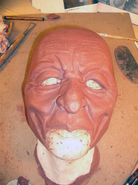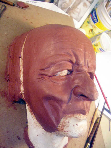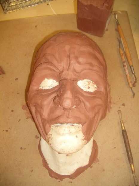 Me ha pasado tener un molde de yeso de mi cara, pero esto se puede también hacer en una cabeza de espuma de poliestireno con las características prominentes trazadas para que coincida con su propio. Usando mi propia cara me permitió seguir más de cerca los contornos para crear formas que se ven como mi propio envejecimiento natural.