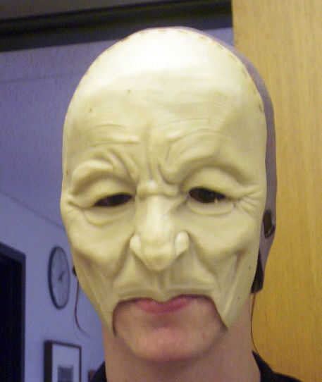 A continuación corte el exceso látex y mano lo cosen a una capucha de lana por lo que encajaría en mi cabeza todo. Tratar fue como mirando en un espejo de futuro espeluznante. Nota a sí mismo: hidratar diariamente!