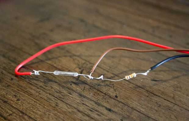 Los interruptores magnéticos Reed que utilizo son algo delicados y rompí algunos de manejo áspero mientras que alambré para arriba. Te recomiendo probarlos después de conectar el les (pruebas de continuidad del voltímetro deberían funcionar).