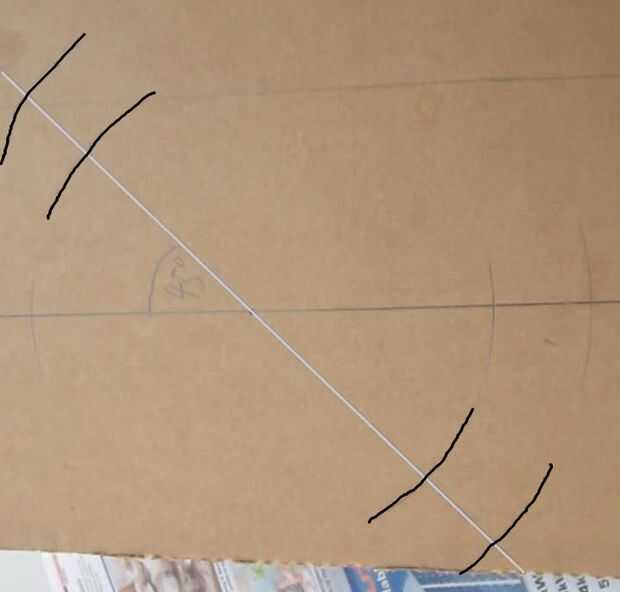 3. Trazar una línea recta por el centro y los 2 arcos, usando la regla. Esta línea debe cruzar los arcos opuestos 2. Luego, dibuja otra línea en un ángulo de 45 grados a la línea recta.
