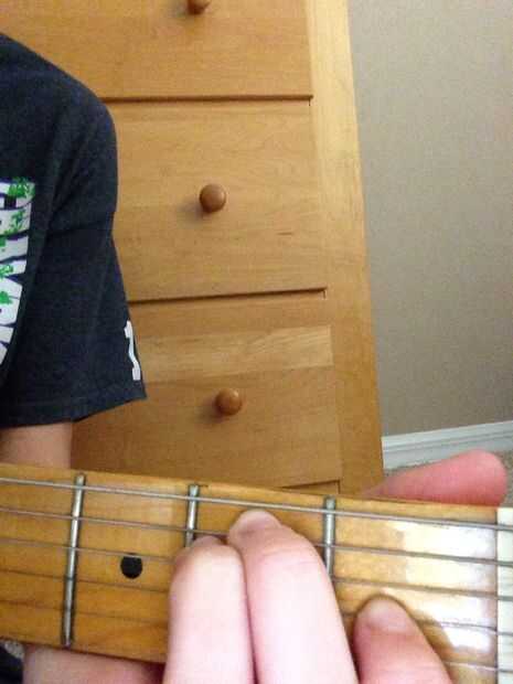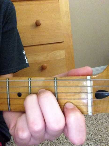 Soy el acorde es la exacta misma digitación para el acorde de Em excepto que cada dedo se mueve hacia abajo de una cuerda. (Foto 2)