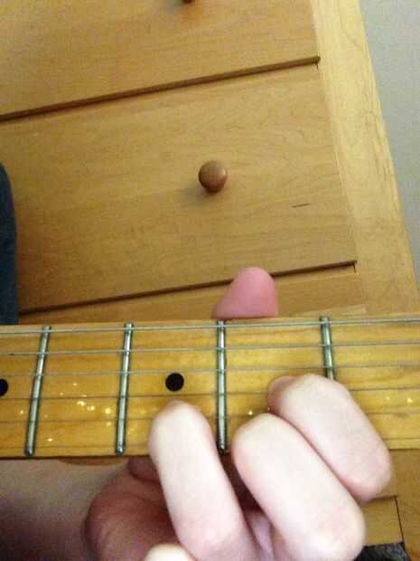 Coloca tu primer dedo en el 2 º traste de la cuerda 3, el dedo 2 º en el 2 º traste de la cuerda 1, y el 3er dedo permanece igual que en un acorde de G.