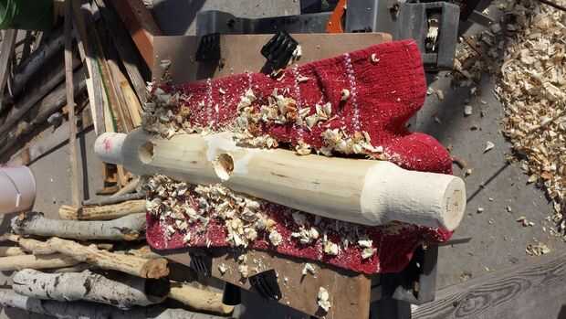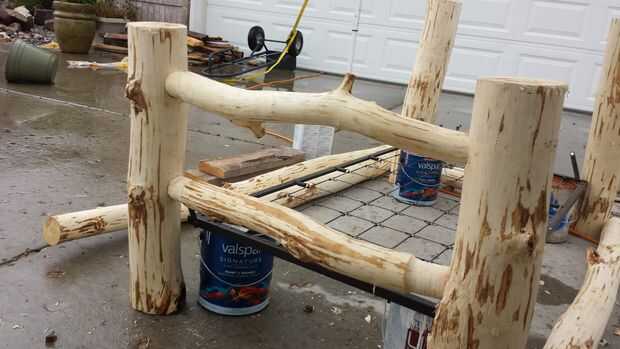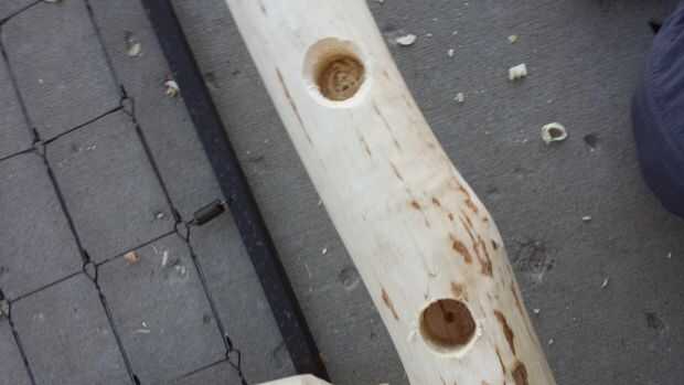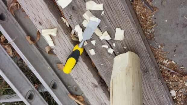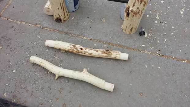 Estos agujeros son un poco complicados si los registros no son rectos, es mejor conseguir registros de que ambos extremos en el mismo ángulo si es posible, incluso si hay un arco o curva en el centro. Revise el cuadro notas. En mi tablero de pie los agujeros son taladrados en el poste de la esquina a unos de 12" y 20" encima de la parte inferior. Es mejor para los dos travesaños en los postes de esquina primero antes tratando de hacer los husos.