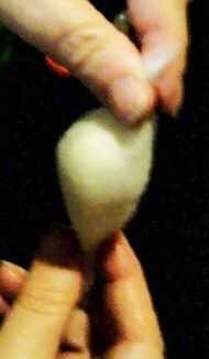 4. Pellizque la nariz y la base de la cola y girar un poco para anclar las fibras alrededor de la bola...