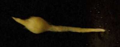 2. Pellizcando la mecha en la nariz y la base de la cola, sumergir el cuerpo en el agua jabonosa. Moje las fibras a través de todo el camino.