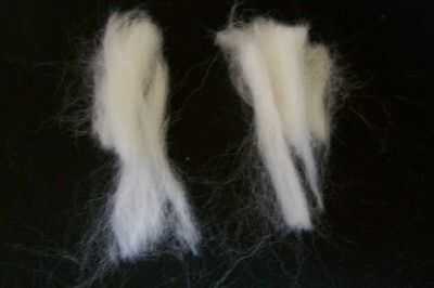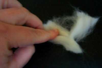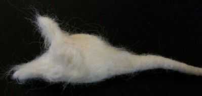 Nota: En mi primera prototipos he intentado hacer las orejas por mojado-fieltro en vez de aguja-batanado. Es posible, pero mucho más lentos y difíciles de controlar.